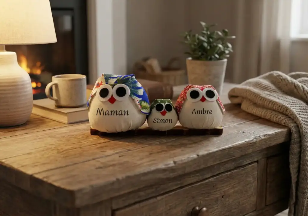 Découvrez une gamme unique de chouettes personnalisables, toutes confectionnées avec soin à partir de matériaux naturels. Chaque modèle peut être personnalisé selon vos envies : choisissez la taille, le ou les motifs et ajoutez les prénoms ou petits mots qui feront de votre chouette un cadeau vraiment unique et chargé de sens.